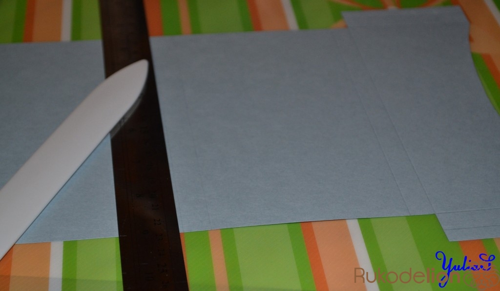По линии будущих загибов палочкой для биговки с помощью линейки проводим линии (бороздки).