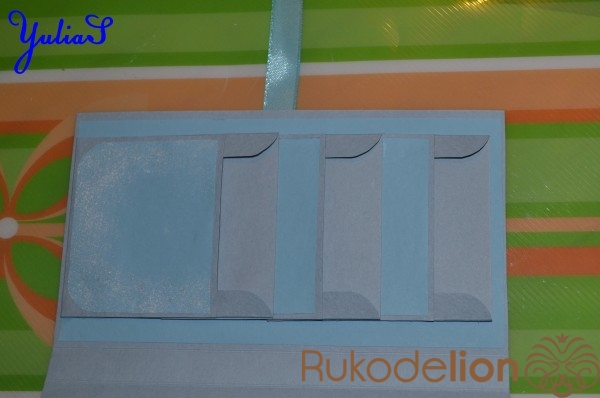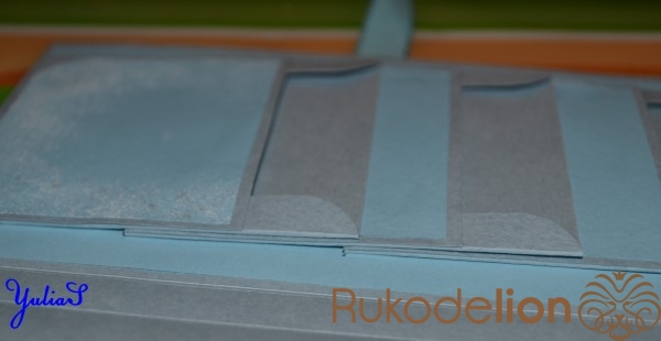 После высыхания с помощью клея Момент приклеиваем на левую сторону шоколадницы кармашки для чая. Приклеивать начинаем с верхней.