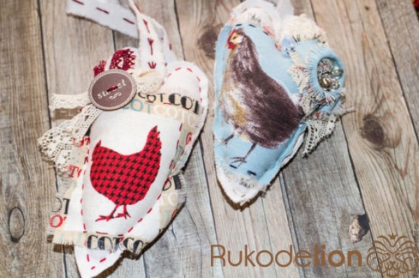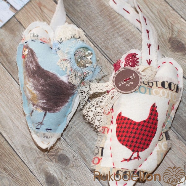 Сердечко с изображением курочки станет отличным сувениром к новому году. Сердечко прошито вручную. На петельке нитками мулине вышиты следы