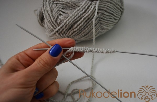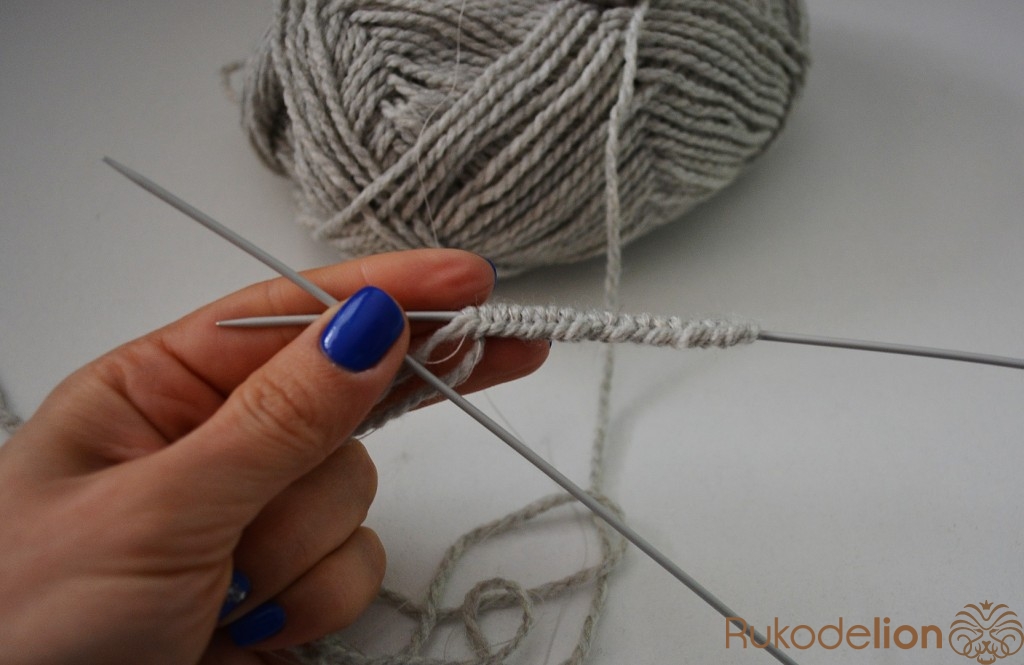 Набираем 20 петелек на спицы.