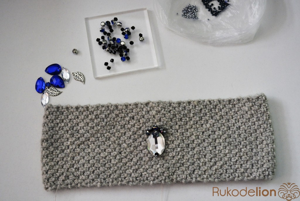 Теперь пришиваем мелкие детали на переднюю часть повязки, чтобы основная конструкция не смотрелась одиноко.