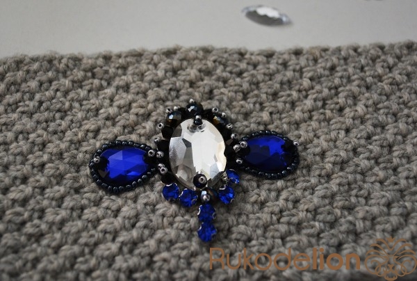 Синие камешки я обшила бисером черным чешским по кругу.