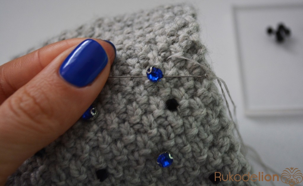Каждую бусинку желательно прошить по 2 раза, чтобы вся конструкция не отлетела при первой стирке.