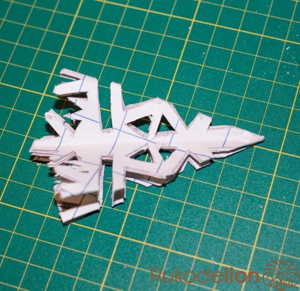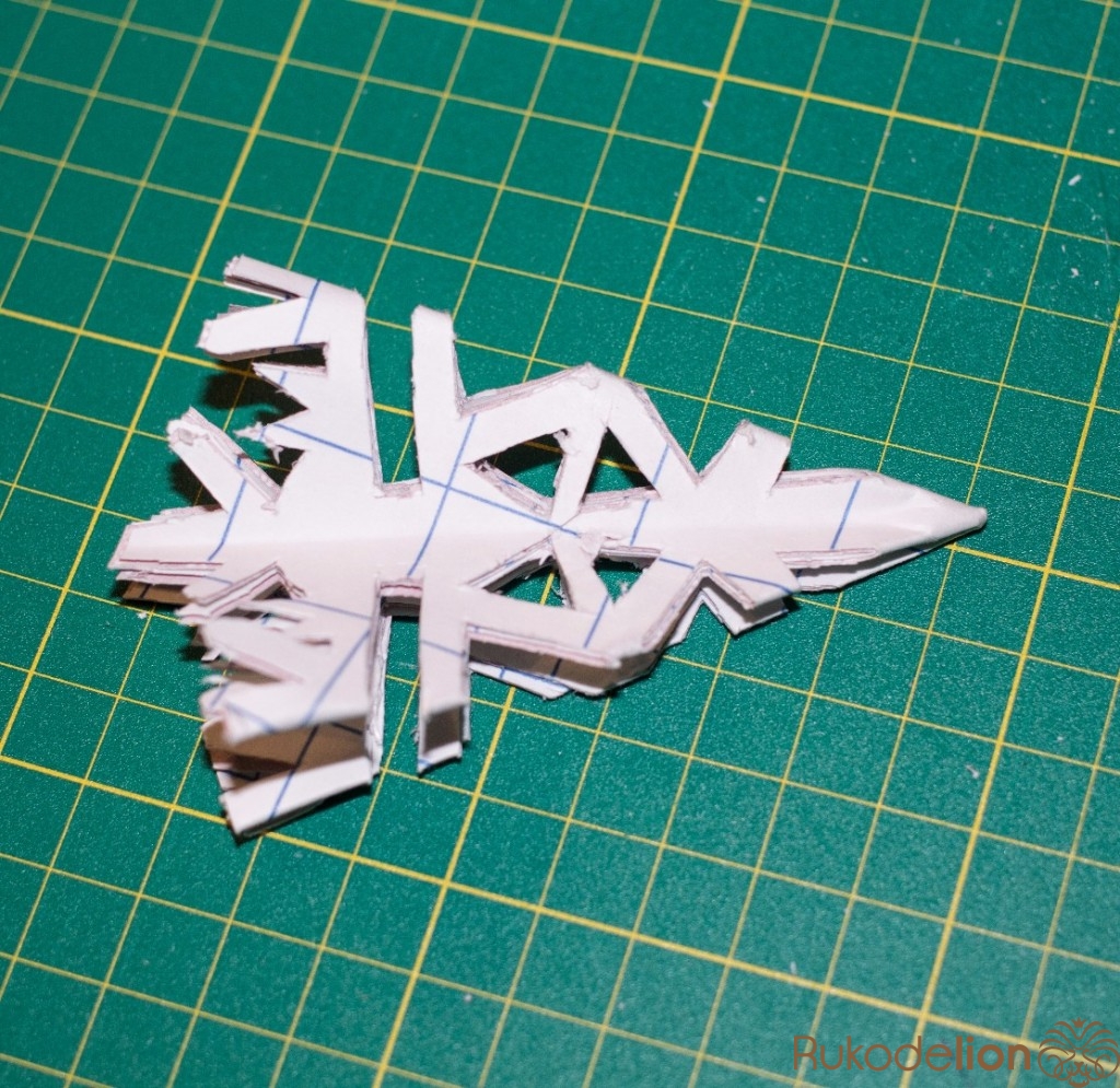Начинаем вырезать, удобно выполнять это на специальном коврике канцелярским ножом, у меня строительный нашелся. Режем не спеша, по несколько раз проводя ножом по рисунку. Вот что получилось.