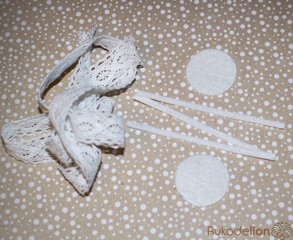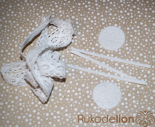 Вырезаем из фетра два кружка диаметром 4 см и три полосочки шириной 0,3-0,5 мм и длиной 12см.