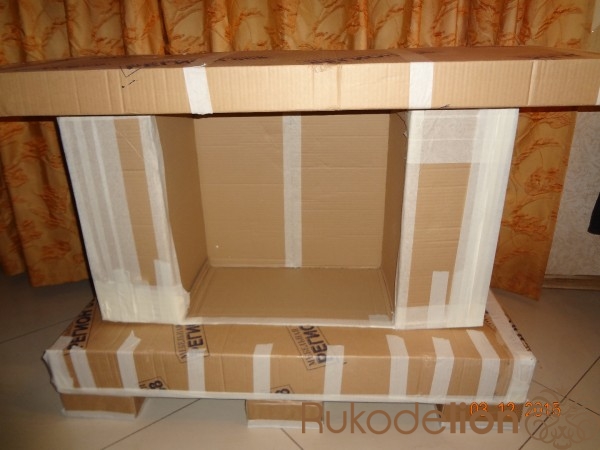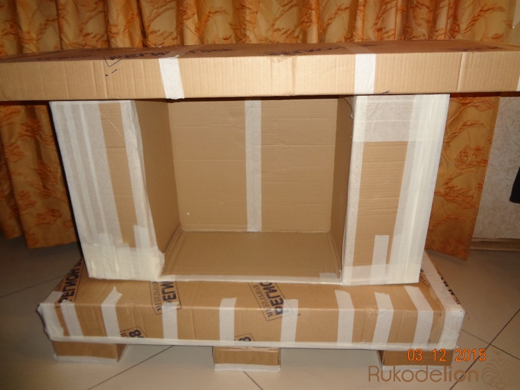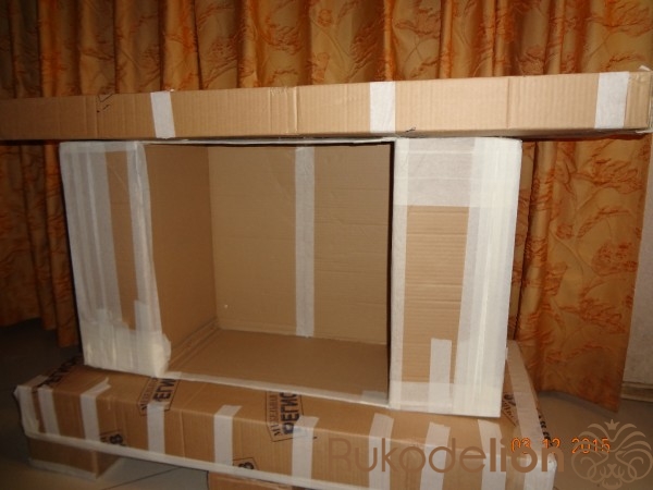 1.любые,желательно чистые, картонные коробки. От их формы и размера будет зависеть размер будущего камина .