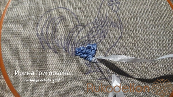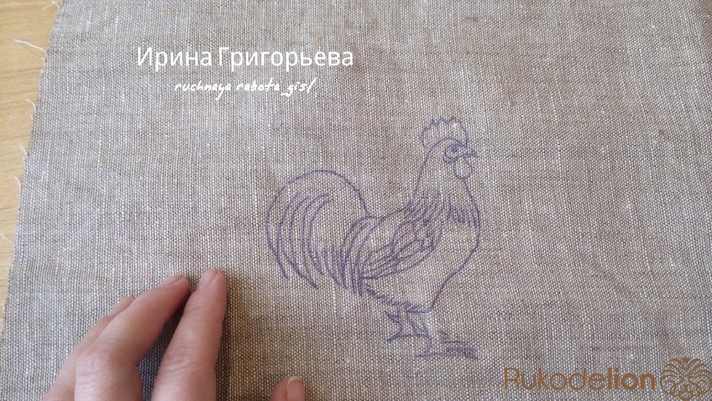 Итак, начнём! Найдите для себя интересный рисунок петушка и, с помощью копирки, перенесите рисунок на ткань. Натяните ткань с рисунком на пяльца.