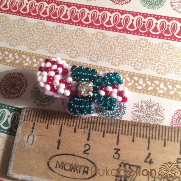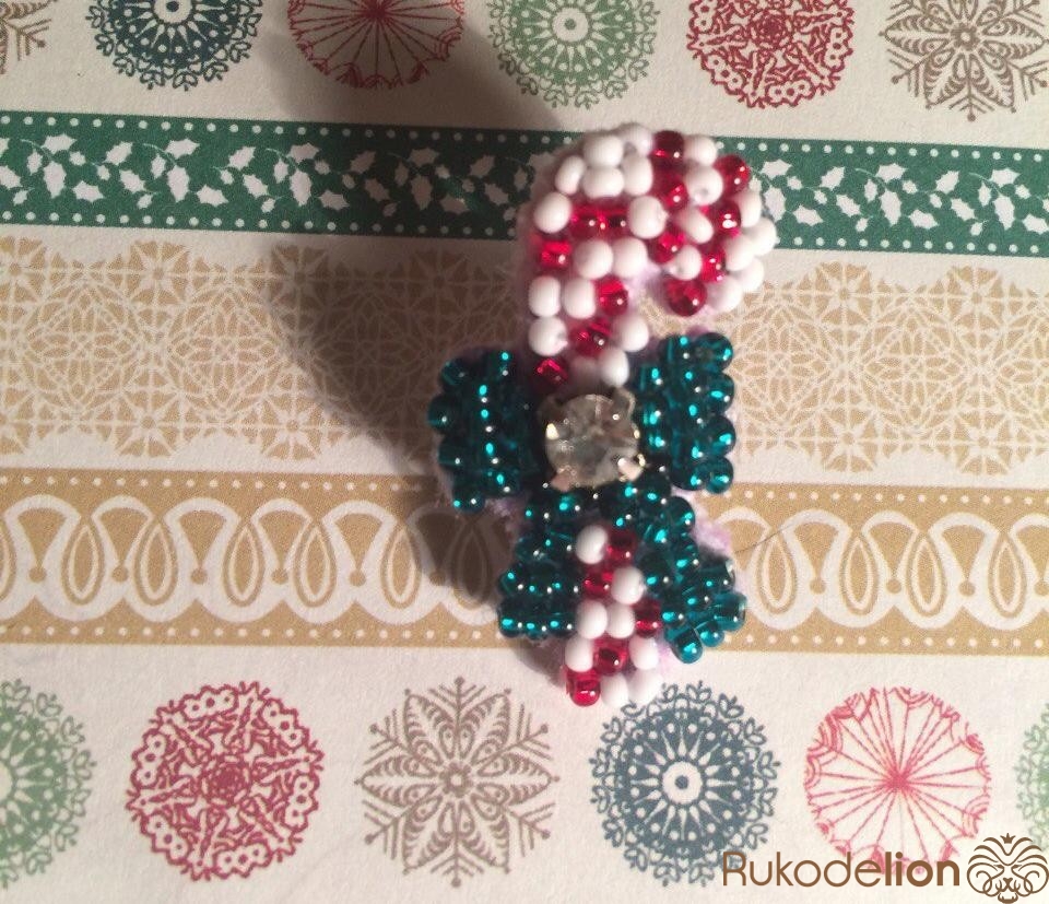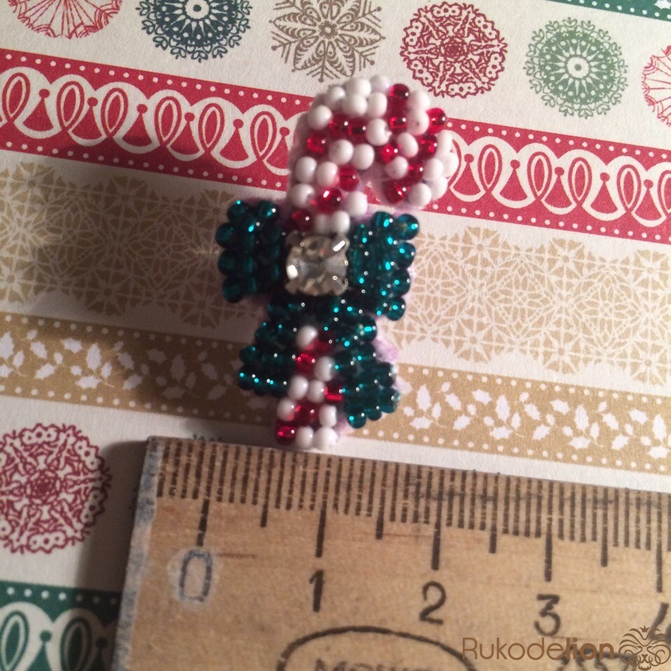 Брошь выполнена в виде традиционного новогоднего леденца. Используемая техника: вышивка бисером