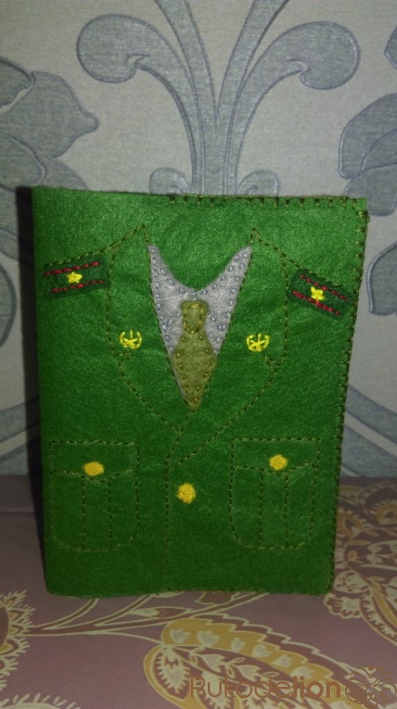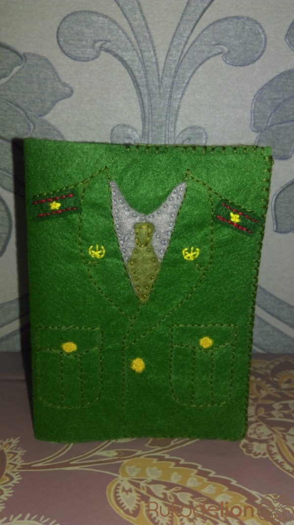 Обложка выполнена из жёсткого корейского фетра, сшито вручную