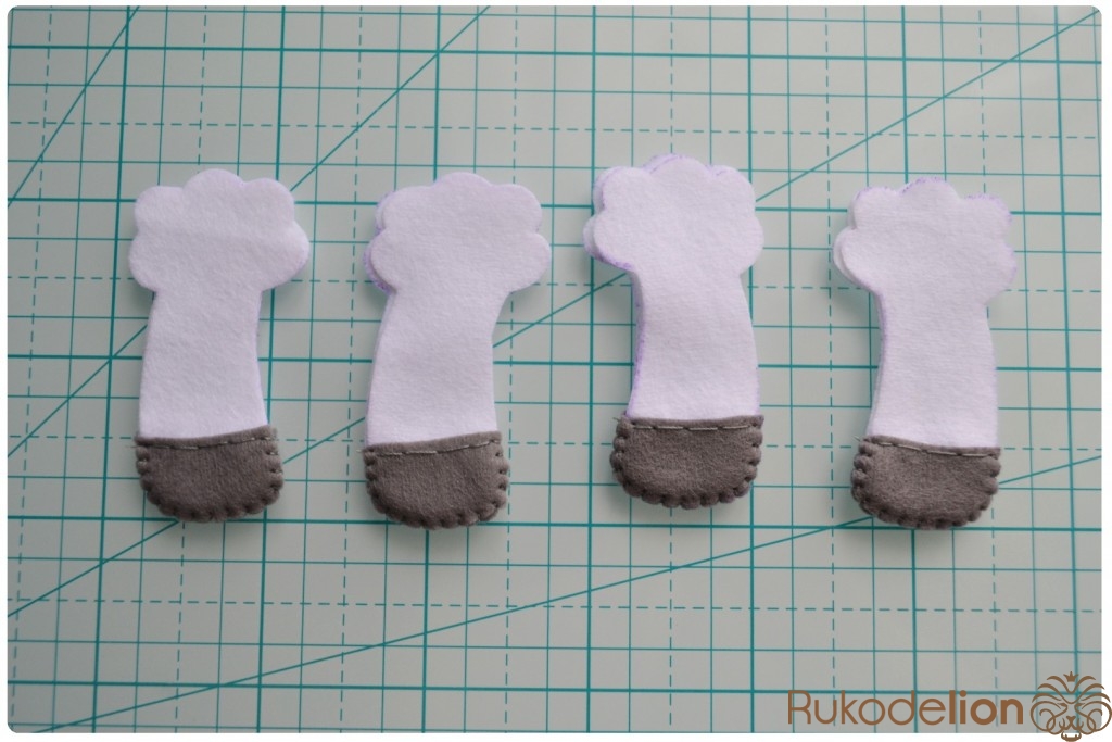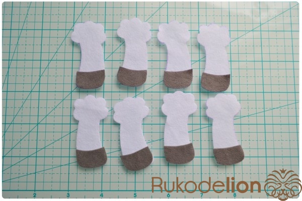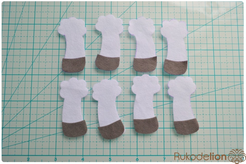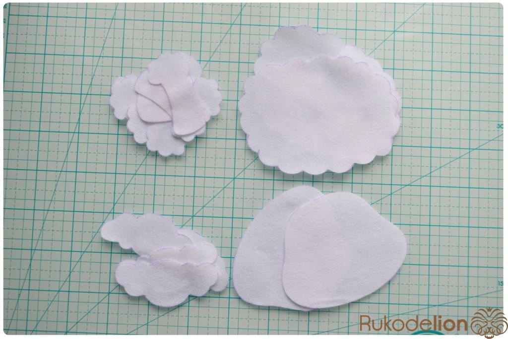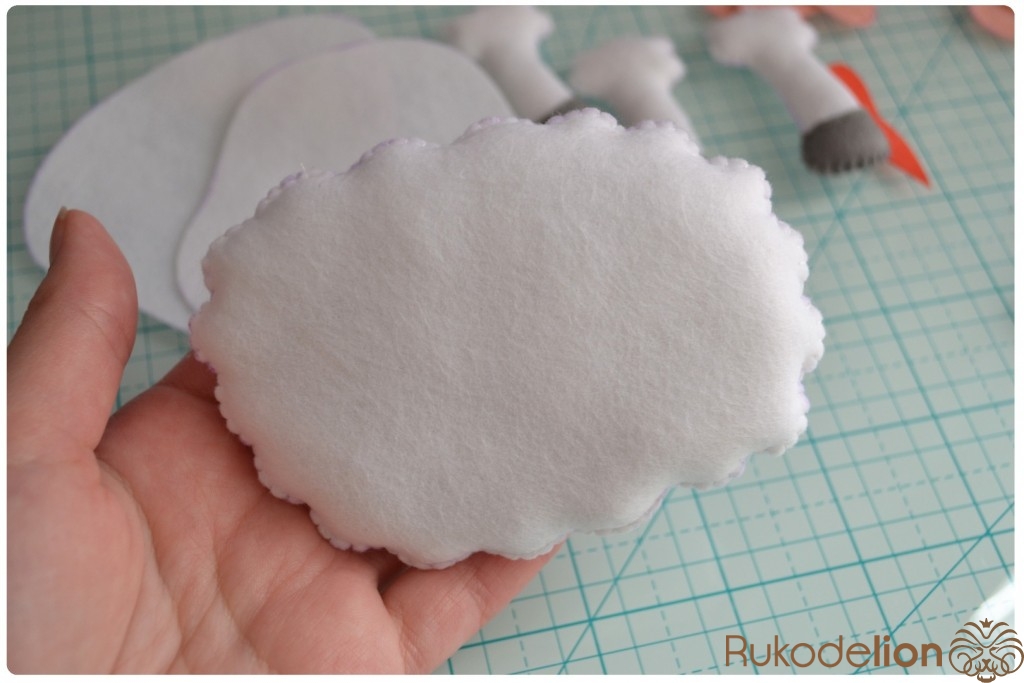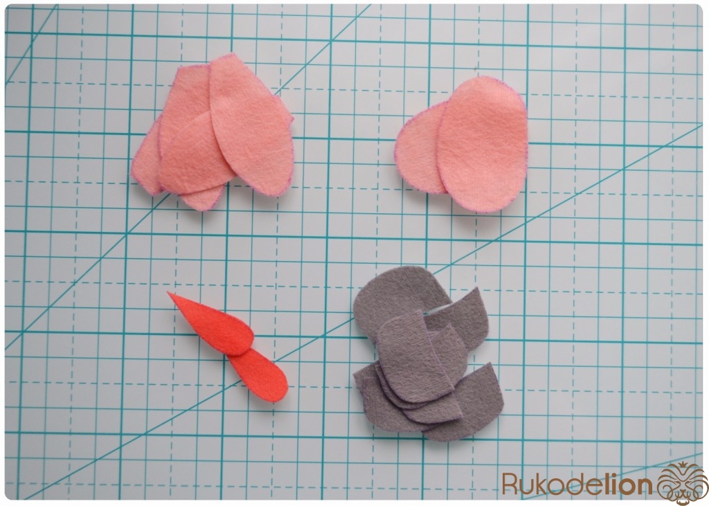 1. Фетр: белый, серый, розовый, коралловый, голубой, черный (я буду использовать испанский, полиэстеровый, мягкий, тонкий (0,5 мм) фетр)
