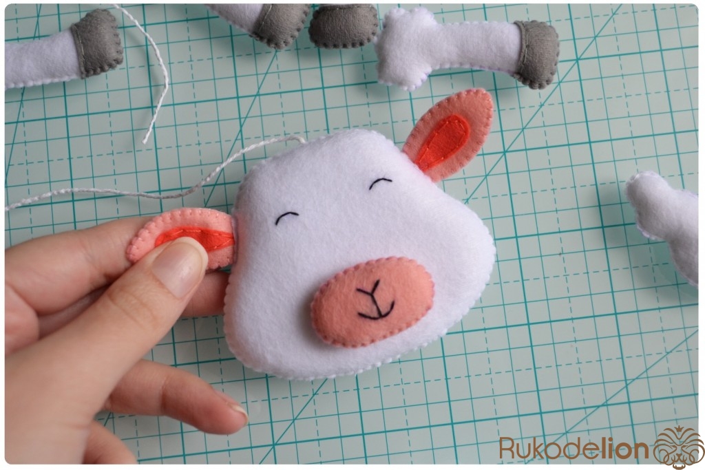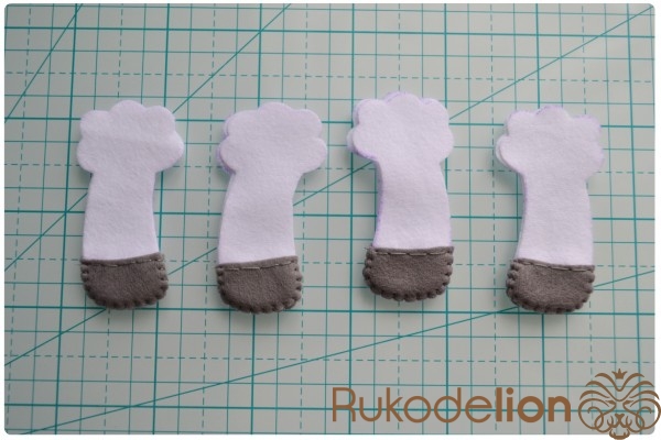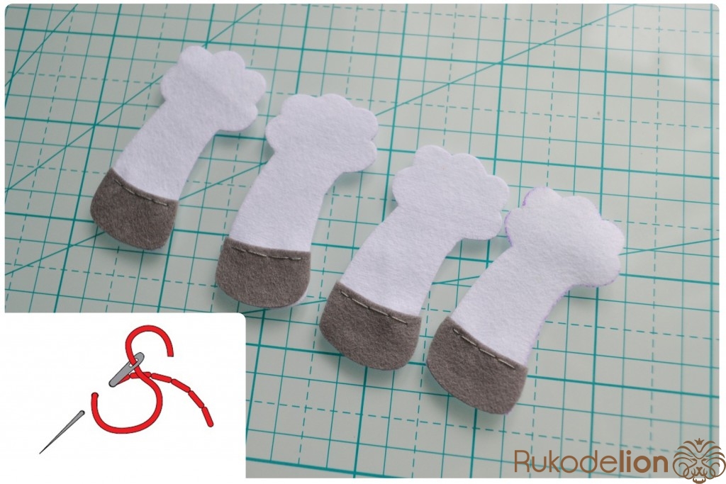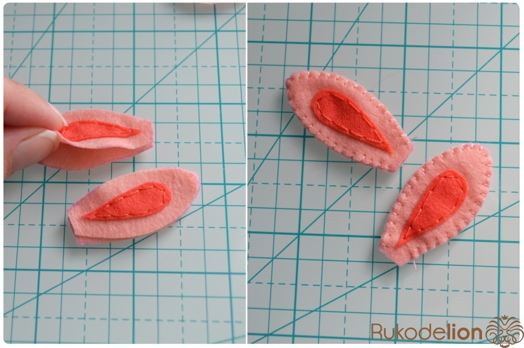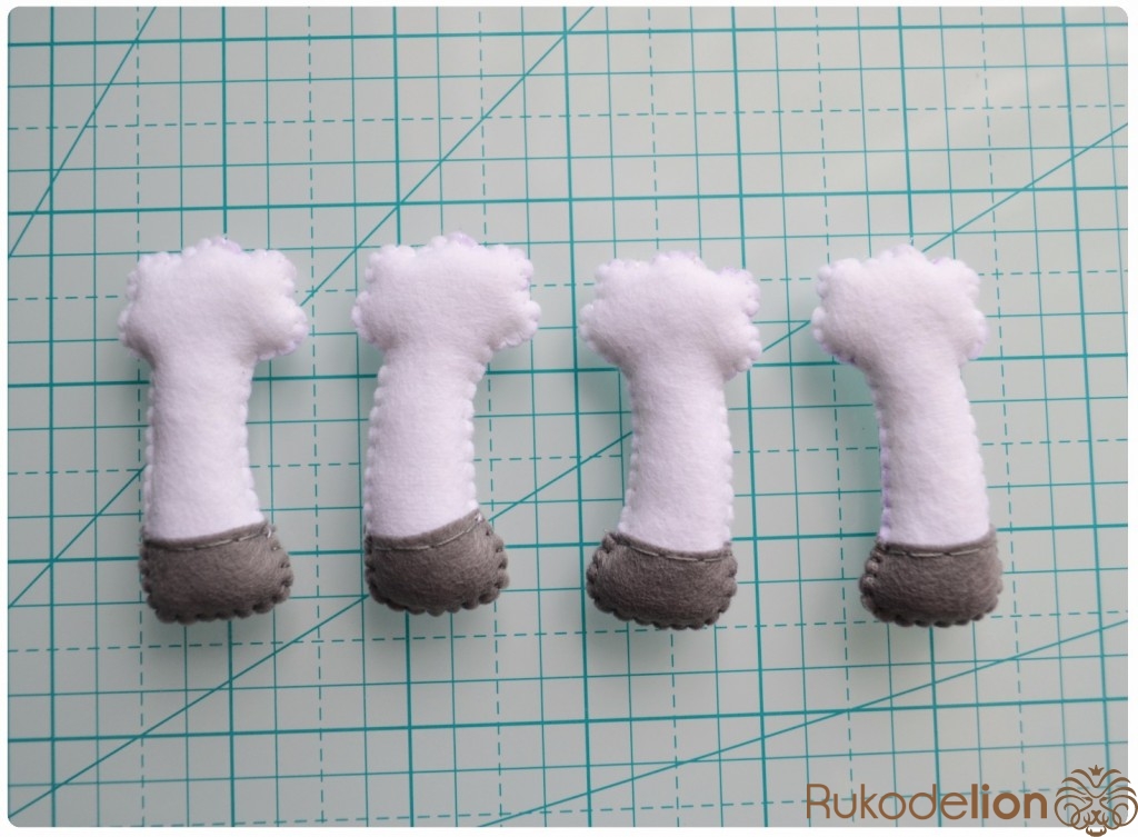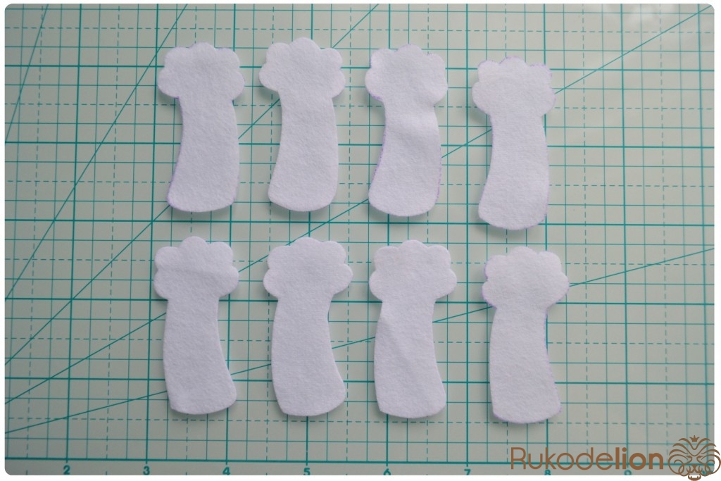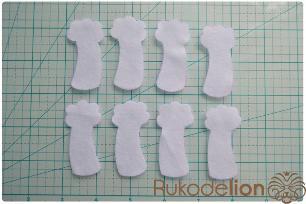 1. Фетр: белый, серый, розовый, коралловый, голубой, черный (я буду использовать испанский, полиэстеровый, мягкий, тонкий (0,5 мм) фетр)