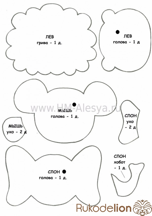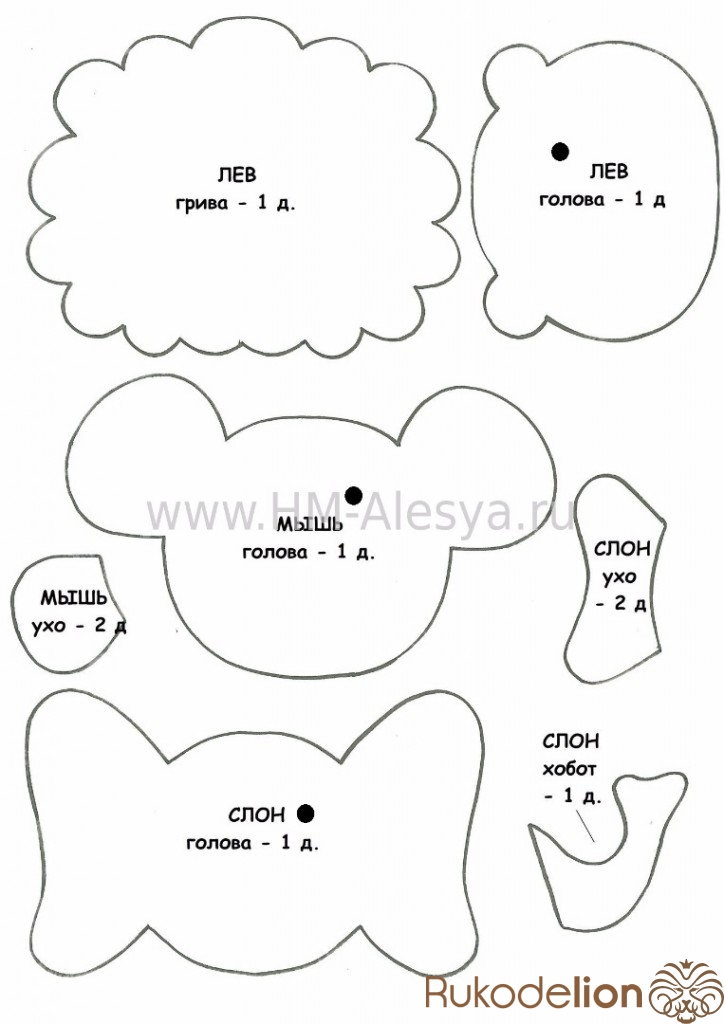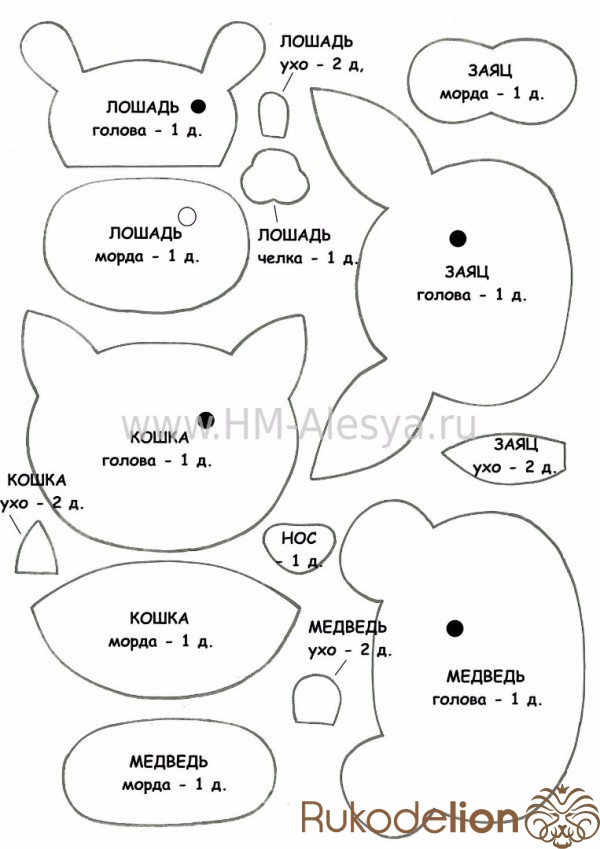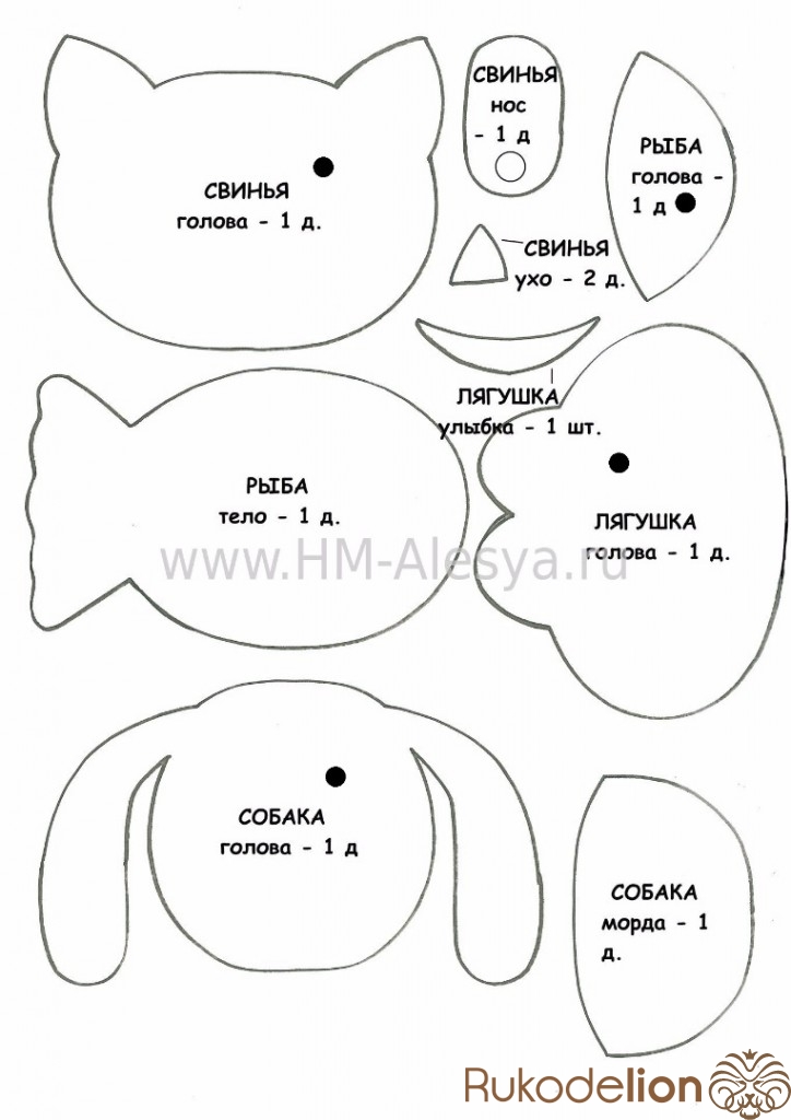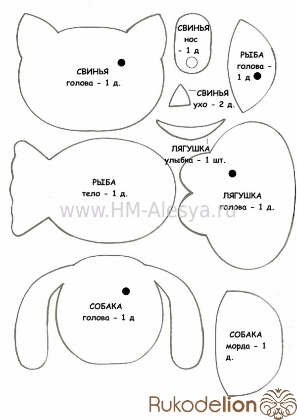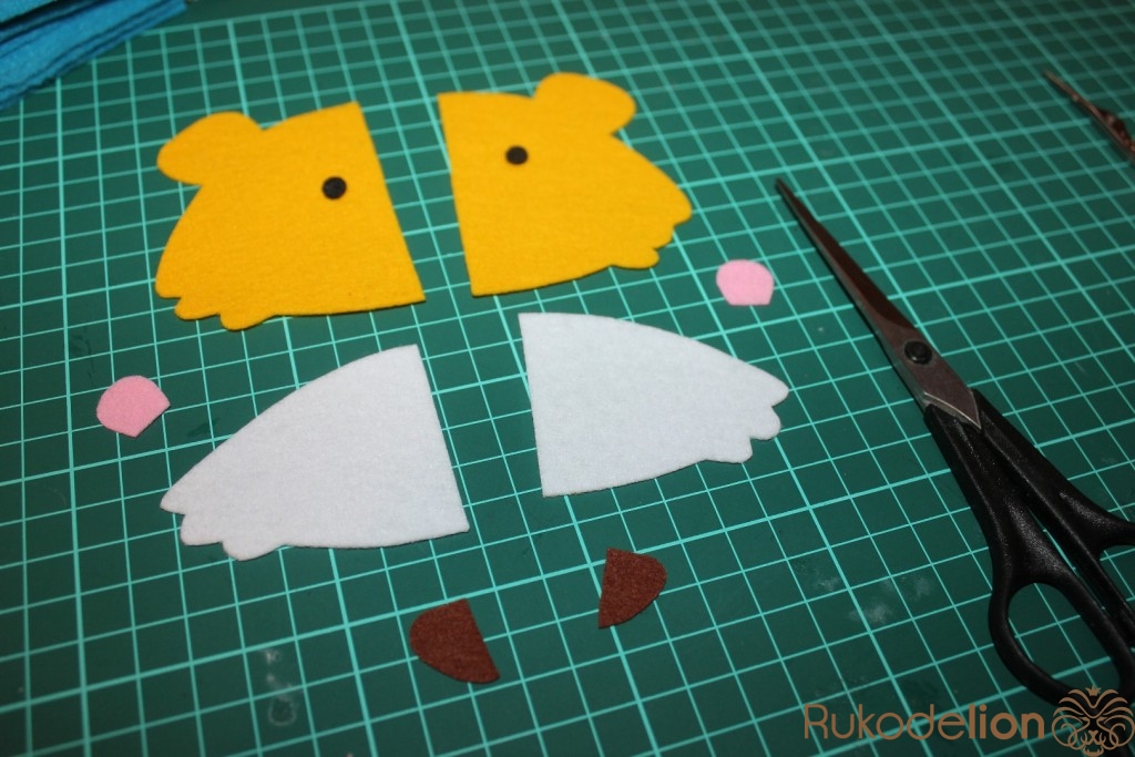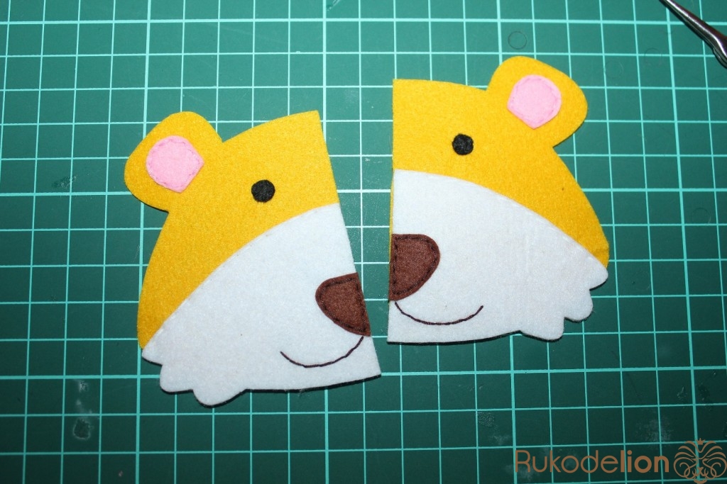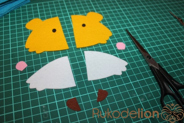 Так же обводим уши и нос. Вырезаем детали.