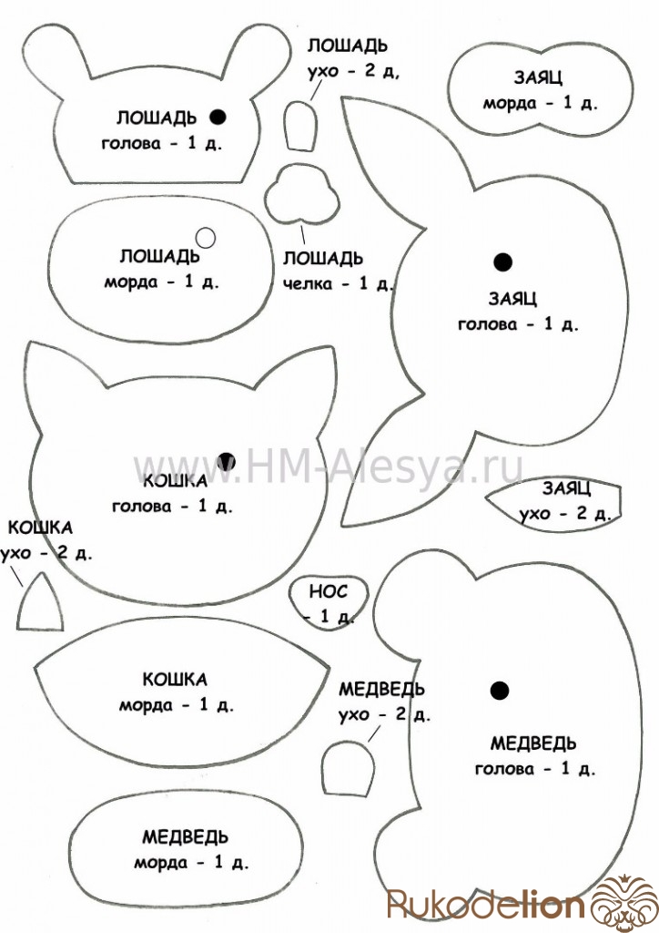 ВАЖНО помнить, что нос у зверей повторяется.