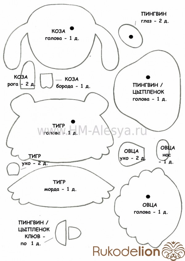 Если соблюдать расположение деталек, то могут получится чудо-звери :-)