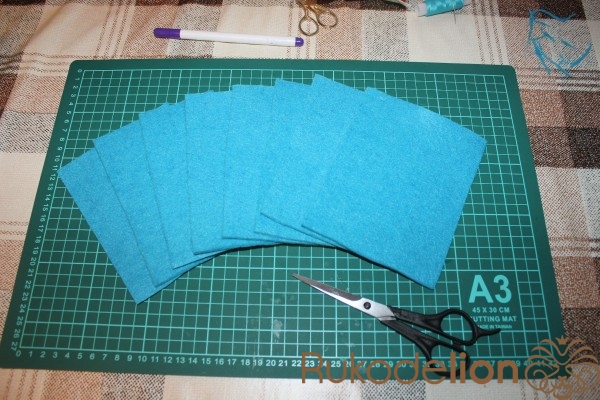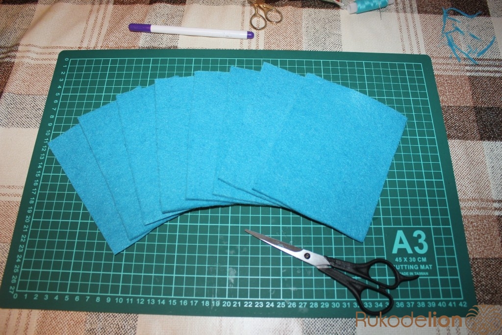 Фетр должен быть 46 х 30 см, толстым – 2-3 мм, но мягким.