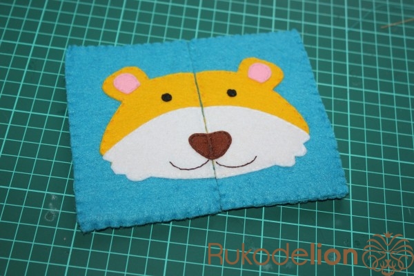 Приступаем к пришиванию тигра к основе пазла.