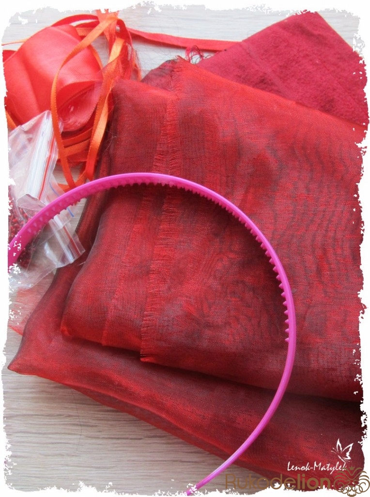 Инструменты: клей-пистолет, ножницы, мел, нитки, иголка, свечки для обжига ткани, крючок для вязания №3.