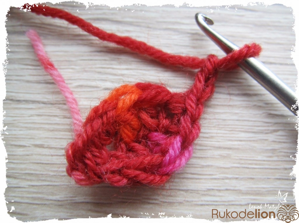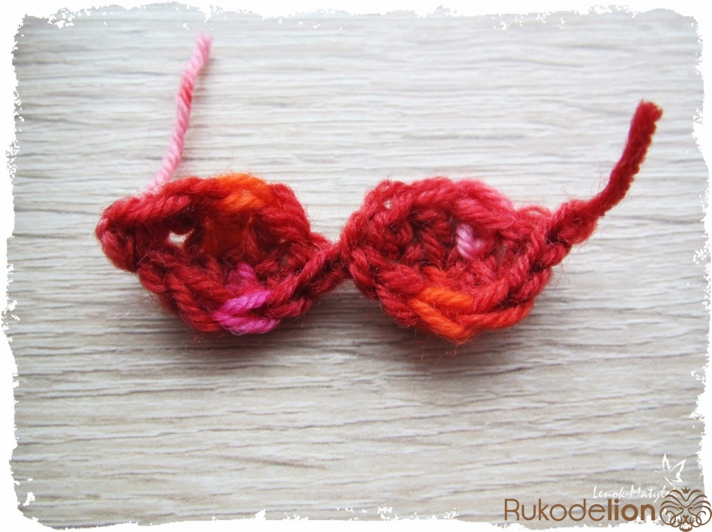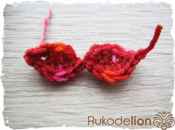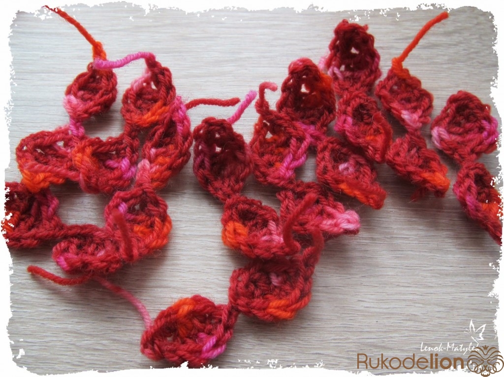 Приступаем к изготовлению листиков для наших розочек. Мы их свяжем при помощи цветной пряжи и крючка для вязания №3.