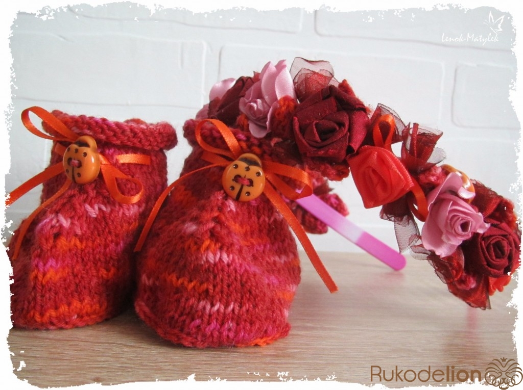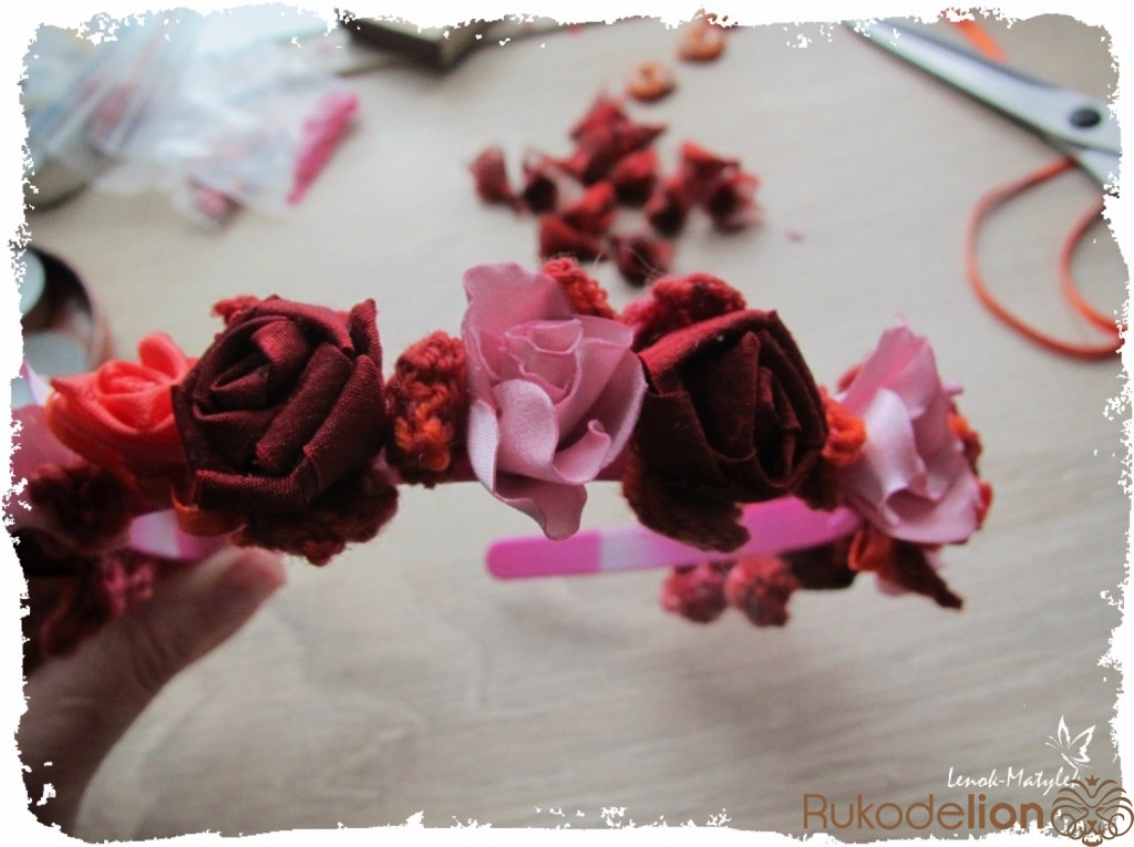 Обруч «Розочки» для девочки Веточки готов! Теперь он вместе с пинеточками станет настоящим комплектом «на выход».