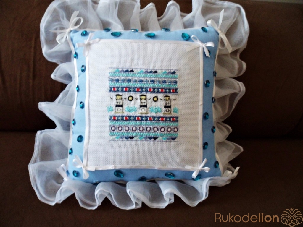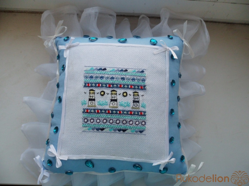 Предлагаю вам немного помечтать о море, вышивая декоративную подушку или морскую картину.