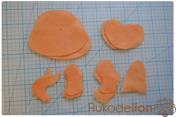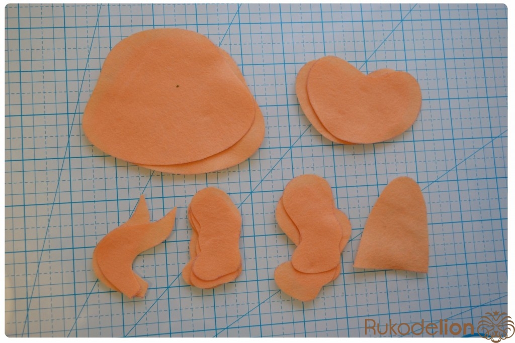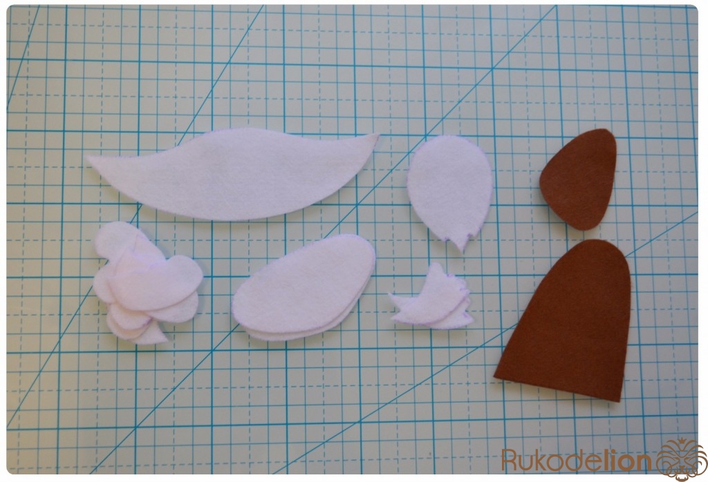 2. Фетр: бежевый, коричневый, белый, синий, черный (я буду использовать испанский полиэстеровый мягкий тонкий (0,5 мм толщиной) фетр)