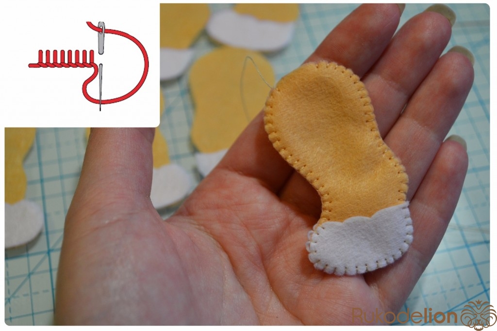 4. Инструменты и прочее: самоисчезающий маркер, иголка, ножницы, синтепон, белая краска по ткани, румяна, мулине, носик, дырокол по фетру, клей Момент Кристалл (либо любой другой ваш любимый текстильный клей), клеевой пистолет
