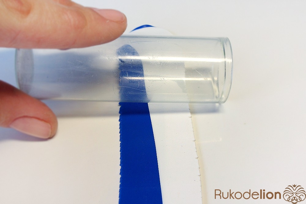 Далее заготовку осторожно вытяните в длину, равномерно сжимая ее пальцами по всей дине и растягивая в стороны, стараясь при этом не повредить ее прямоугольную форму. Теперь к белой стороне детали приложите спицу или толстую проволоку вдоль и начните загибать белые края в сторону спицы, чтобы она оказалась внутри детали.