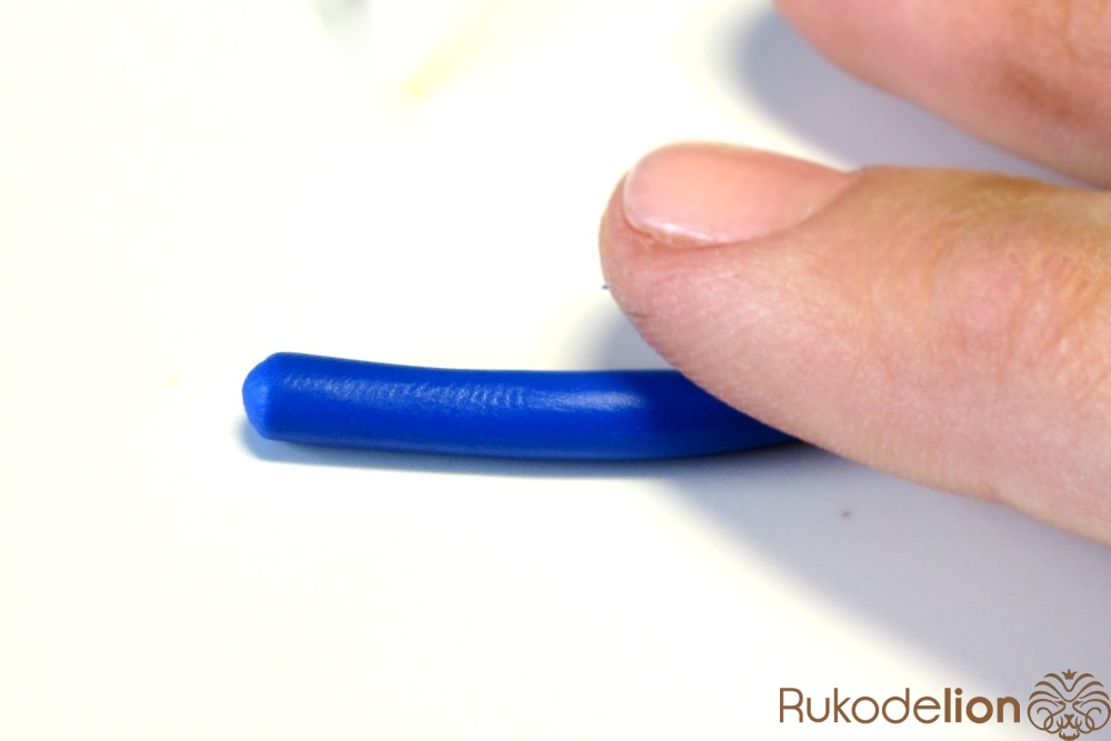 Скатайте из темно-синей глины колбаску толщиной 5мм.