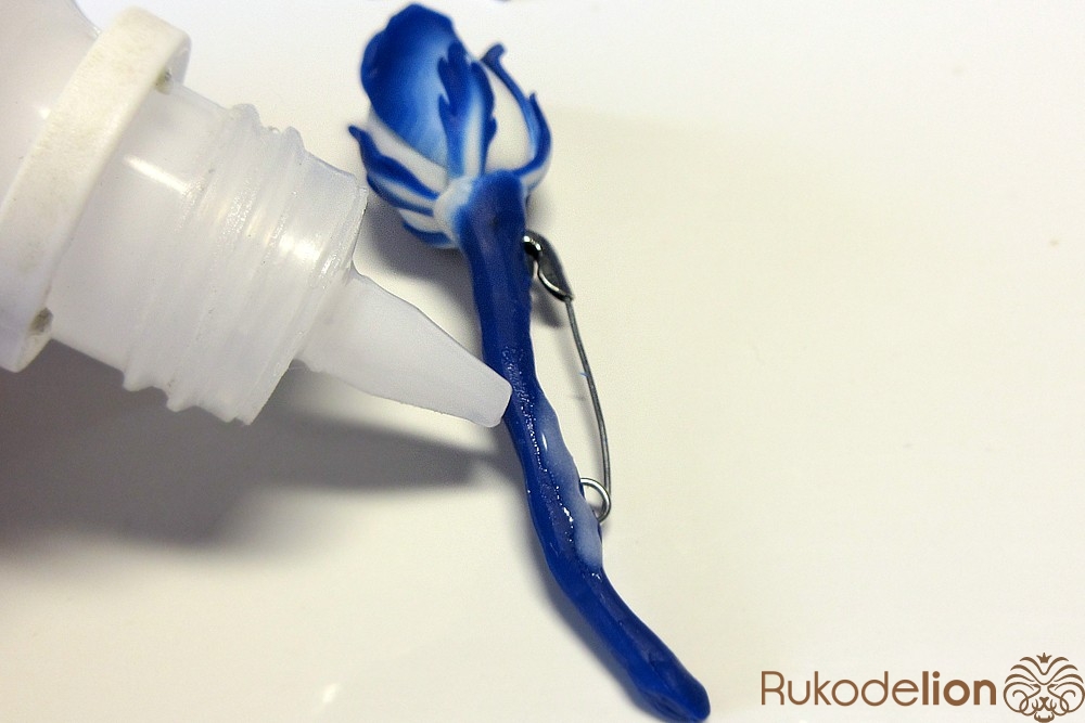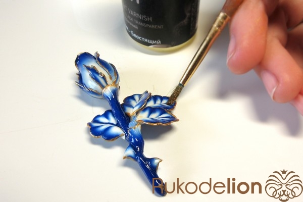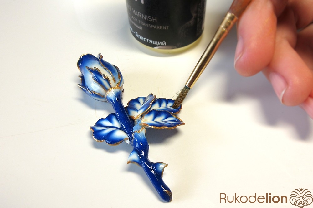 Затем всю розы нужно покрыть глянцевым лаком для полимерной глины.