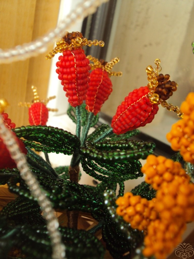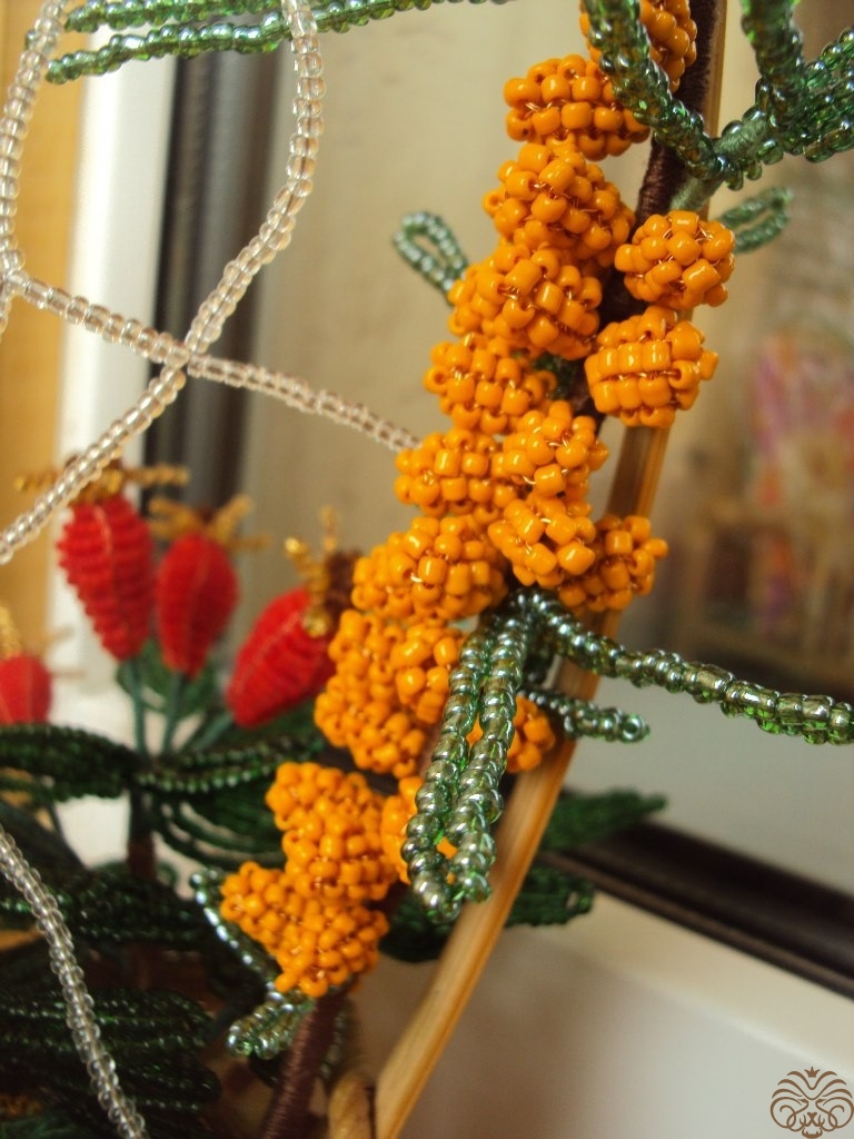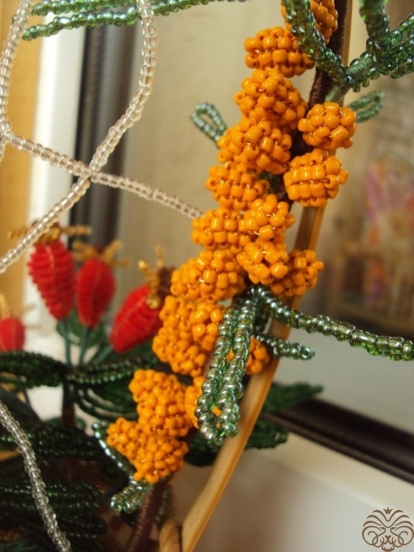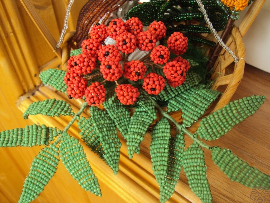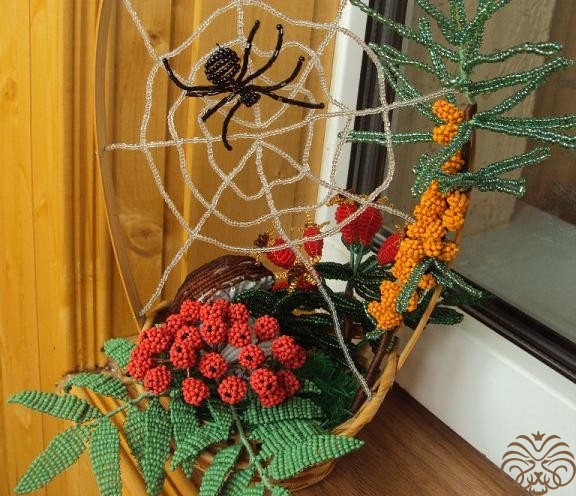 В работе использовались бисер, проволока, нитки, плетеная корзина и наполнитель