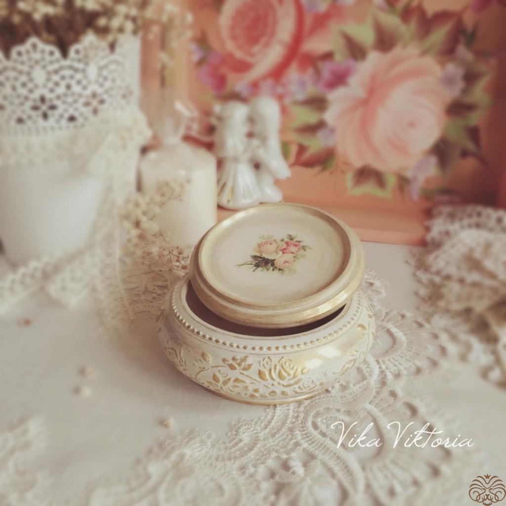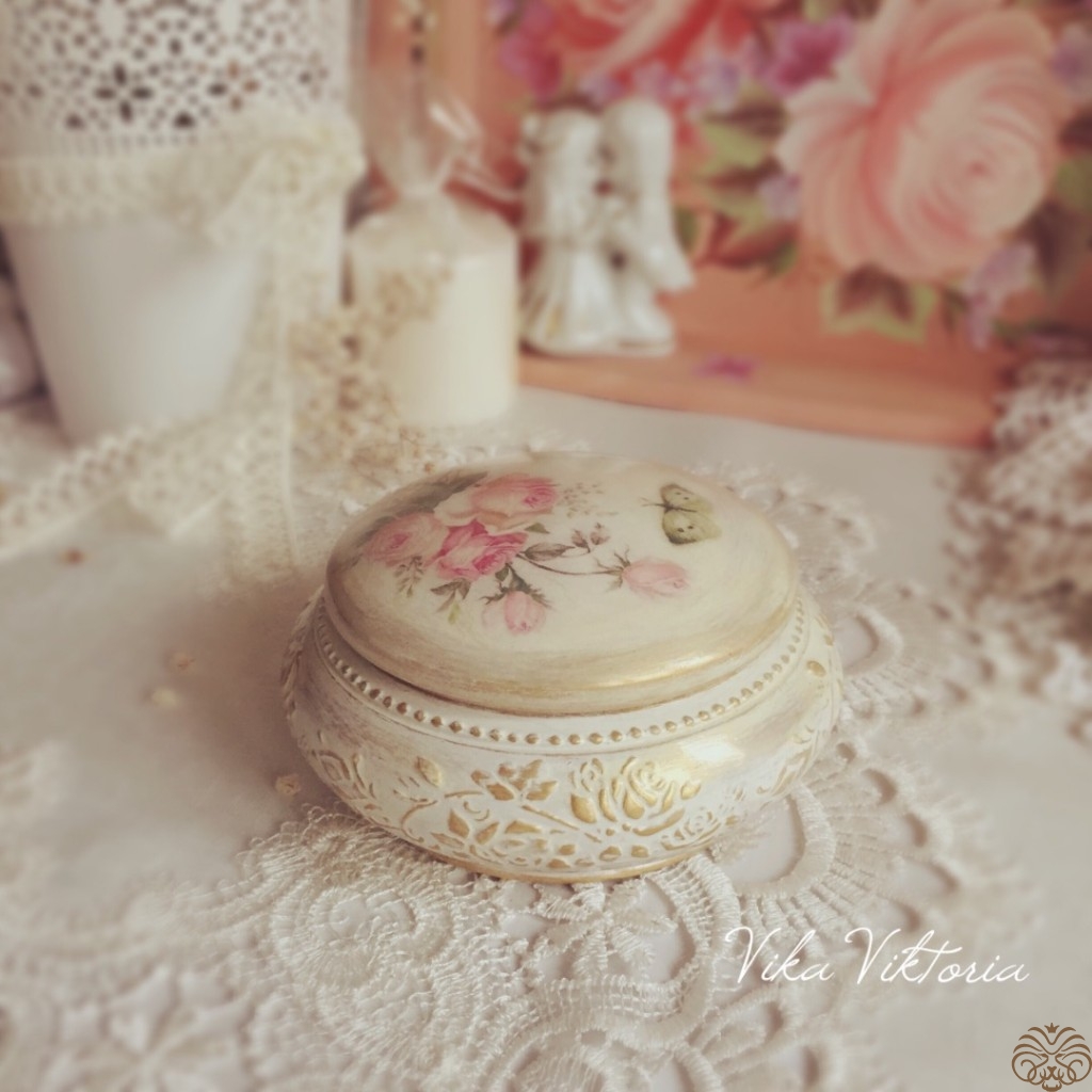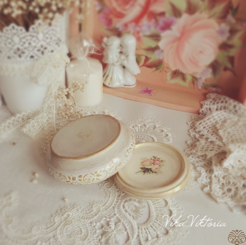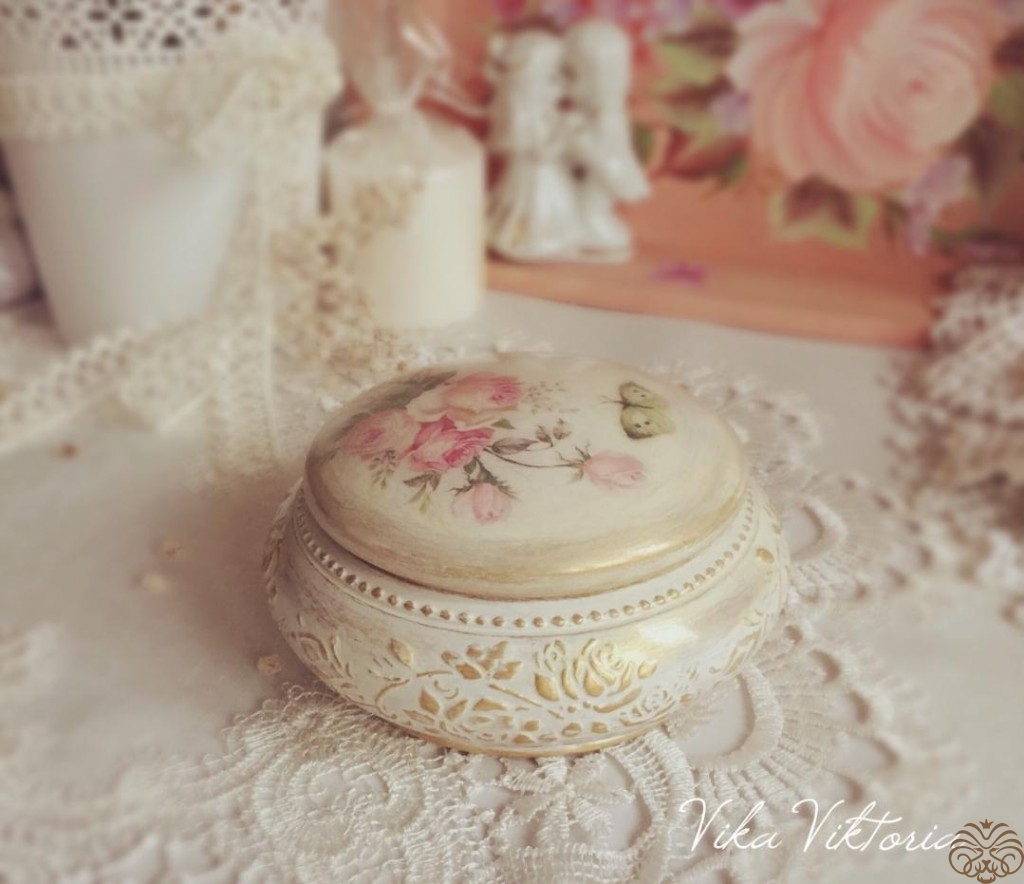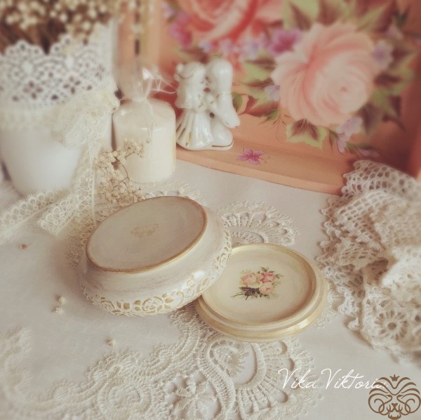 Нежная шкатулочка выполнена в технике декупаж в стиле шебби-шик.