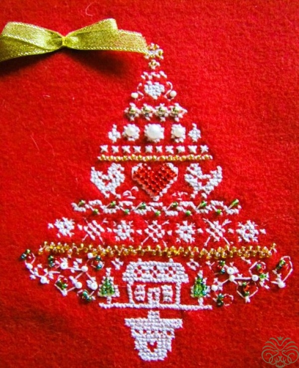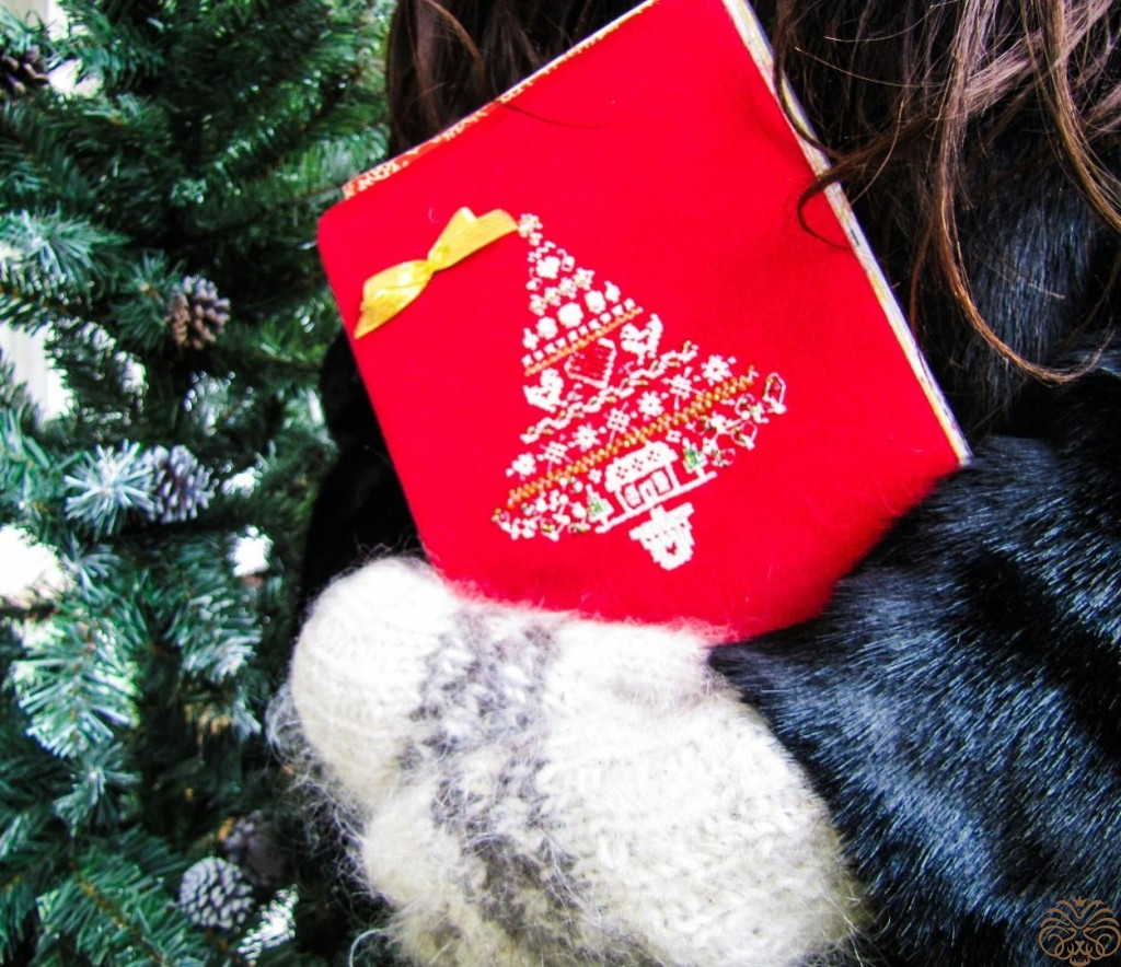 Блокнот выполнен из кашемира, вышит "крестом" рождественский мотив. Для объема пришила бисер на гирлянды, елочки, снежинки.