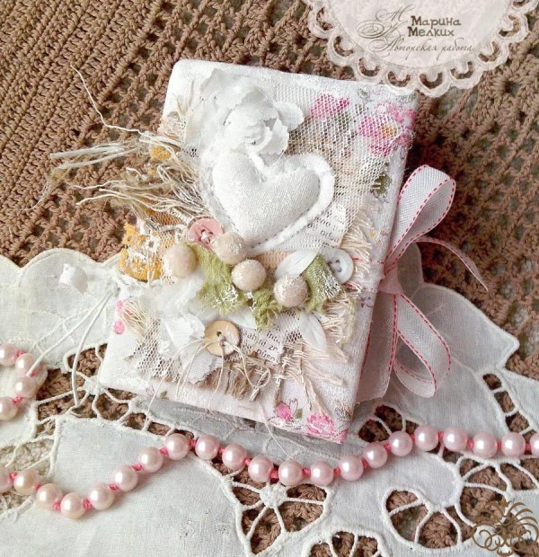 Нежный, воздушный, зефирный блокнотик шебби с мягким сердечком выразит ваши нежные и светлые чувства к тому драгоценному человеку, которому Вы преподнесете такой роскошный и уникальный подарок!