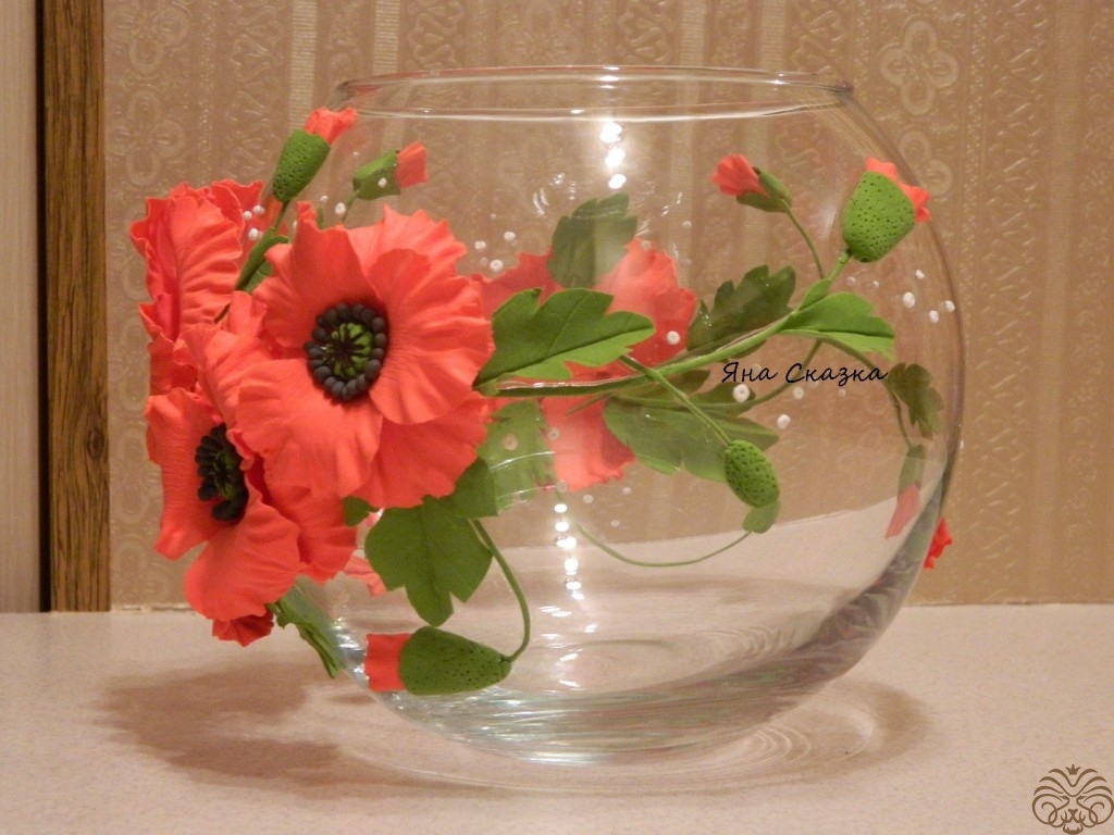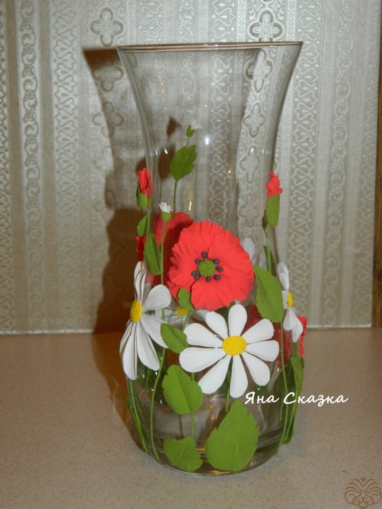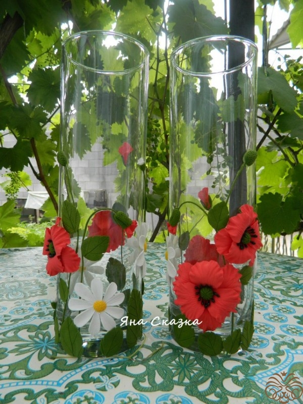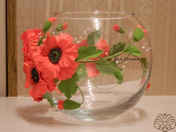 Любую вазу сделают неповторимой цветы ручной работы из полимерной глины!